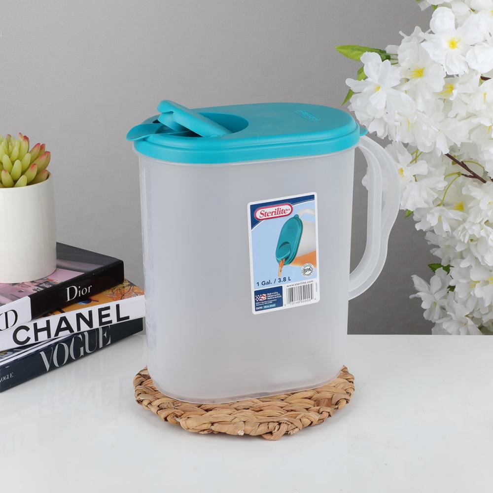 جيك بلاستيك شفاف بغطاء اخضر من الاعلي يمكن تخزين جيك العصير بسهولة في الثلاجة سهل الحمل والتنظيف مصنوع من البلاستيك السعة :3.8لتر