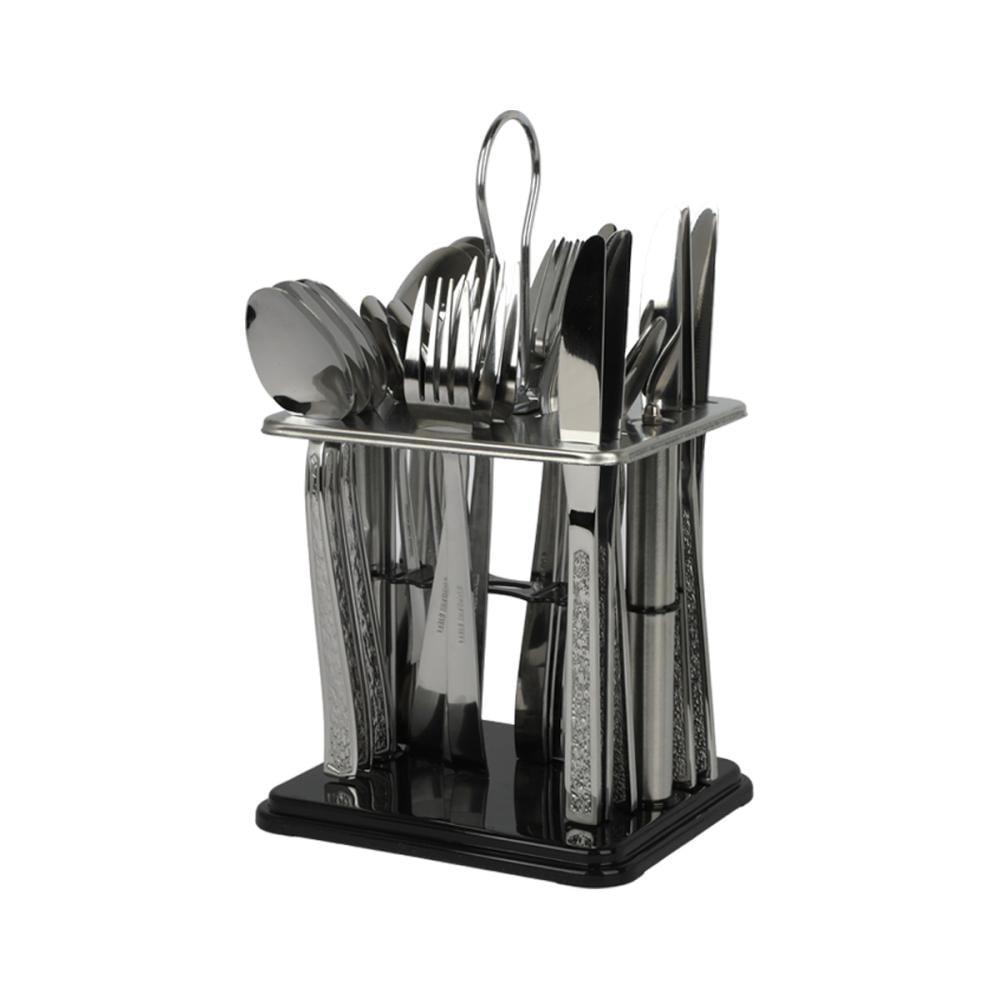طقم ملاعق و شوك و سكاكين مزخرف فضي بستاند استيل 24 قطعة